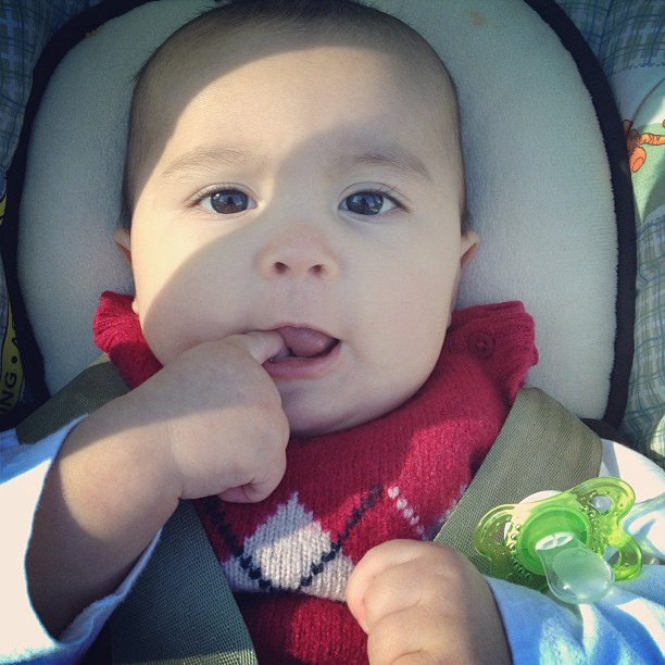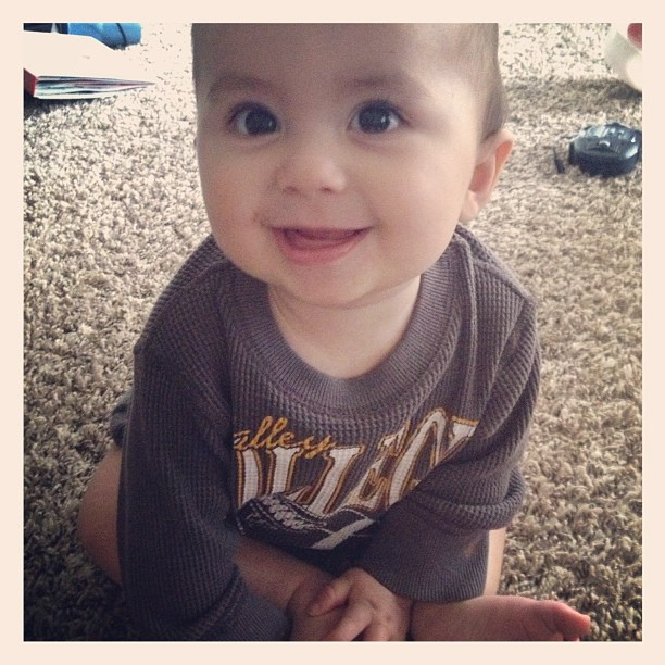 8477753510_abe0d00eee_zMeet Benjamin. He is 8 months old and getting ready to crawl. He is a smiler. He is sweet. He loves to eat. He loves his brothers and his daddy. He really loves his mama. He loves to nurse.